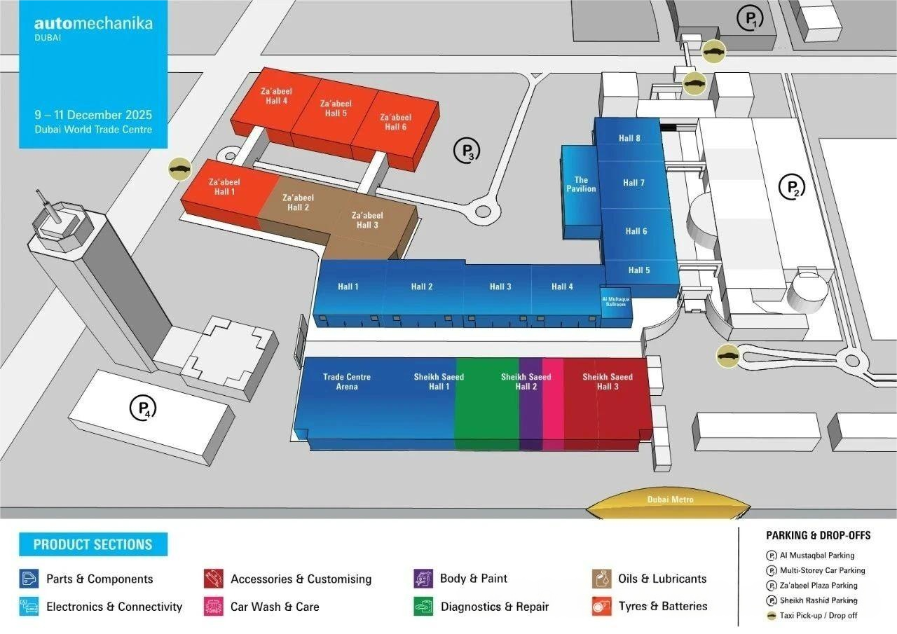 Automechanika Dubai 2025 will expand across 20 halls, featuring pavilions from over 20 countries and regions. This edition centers on six core themes: Sustainability, Electrification & Digitalization, Innovative Technologies, Talent Development, Industry Recruitment, and Workplace Safety.